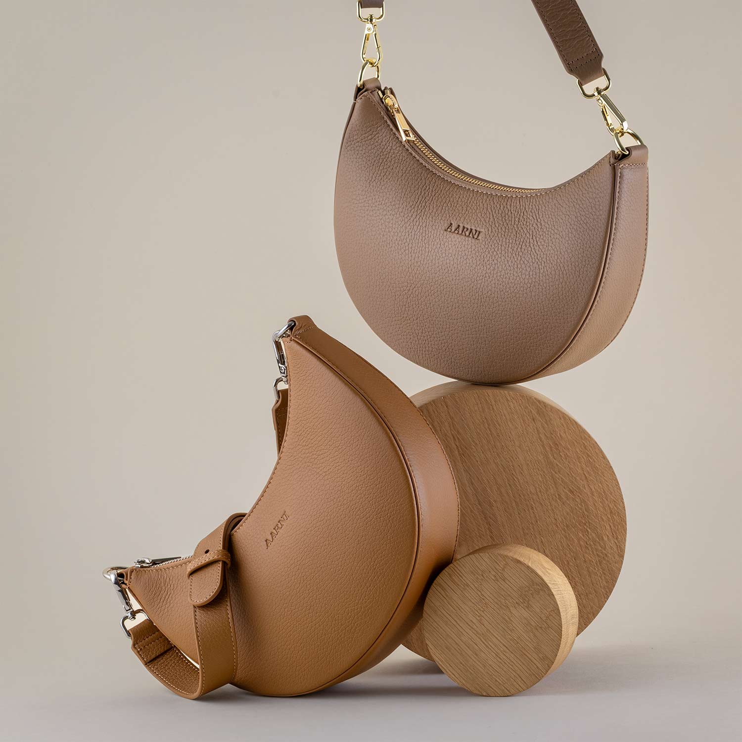 Luna olkalaukku hurmaa tyylillään ja käytännöllisyydellään. Laukku on valmistettu hurmaavan pehmeästä kotimaisesta hirvennahasta. Kaareva, puolikuun muotoinen design mukautuu kauniisti vartaloasi vasten.