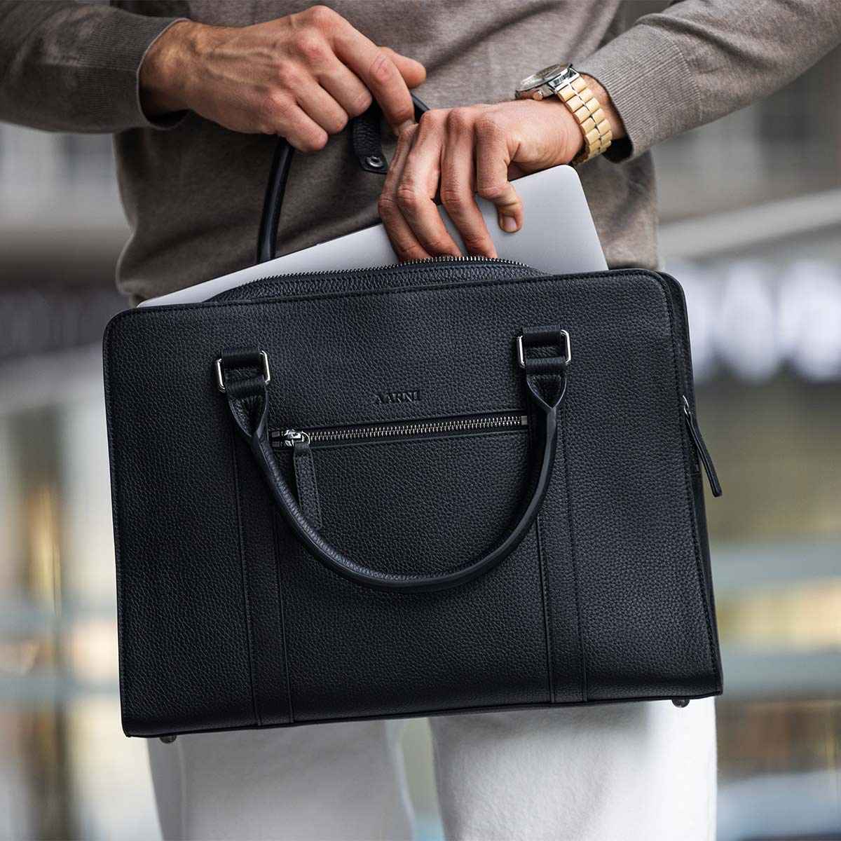 Aarnin Venture tietokonelaukku on upeasta pohjoismaisesta premium-luokan nahasta valmistettu laukku, joka on paras kaverisi toimistolla ja päivän menoissa.