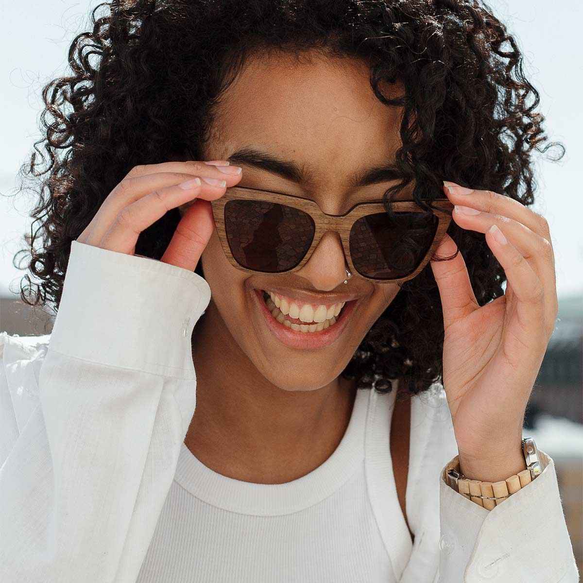 Puumateriaalina käytetään upeaa kotimaista tervaleppää, jonka lämmin ja hieman punertava sävy takaa tyylikkään ilmeen laseille. Kehykset ovat valmistettu ristiinliimaamalla useita puuviiluja, jolloin saavutetaan kevyt ja kestävä rakenne. Ruusukultaisiin peililinsseihin yhdistettynä tämä malli tarjoaa raikkaan kokonaisuuden aurinkoisiin kesäpäiviin.