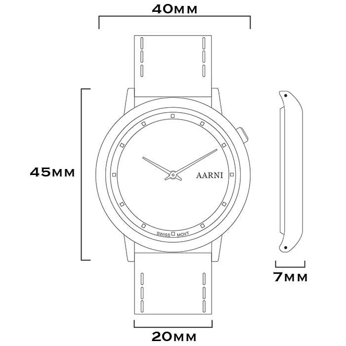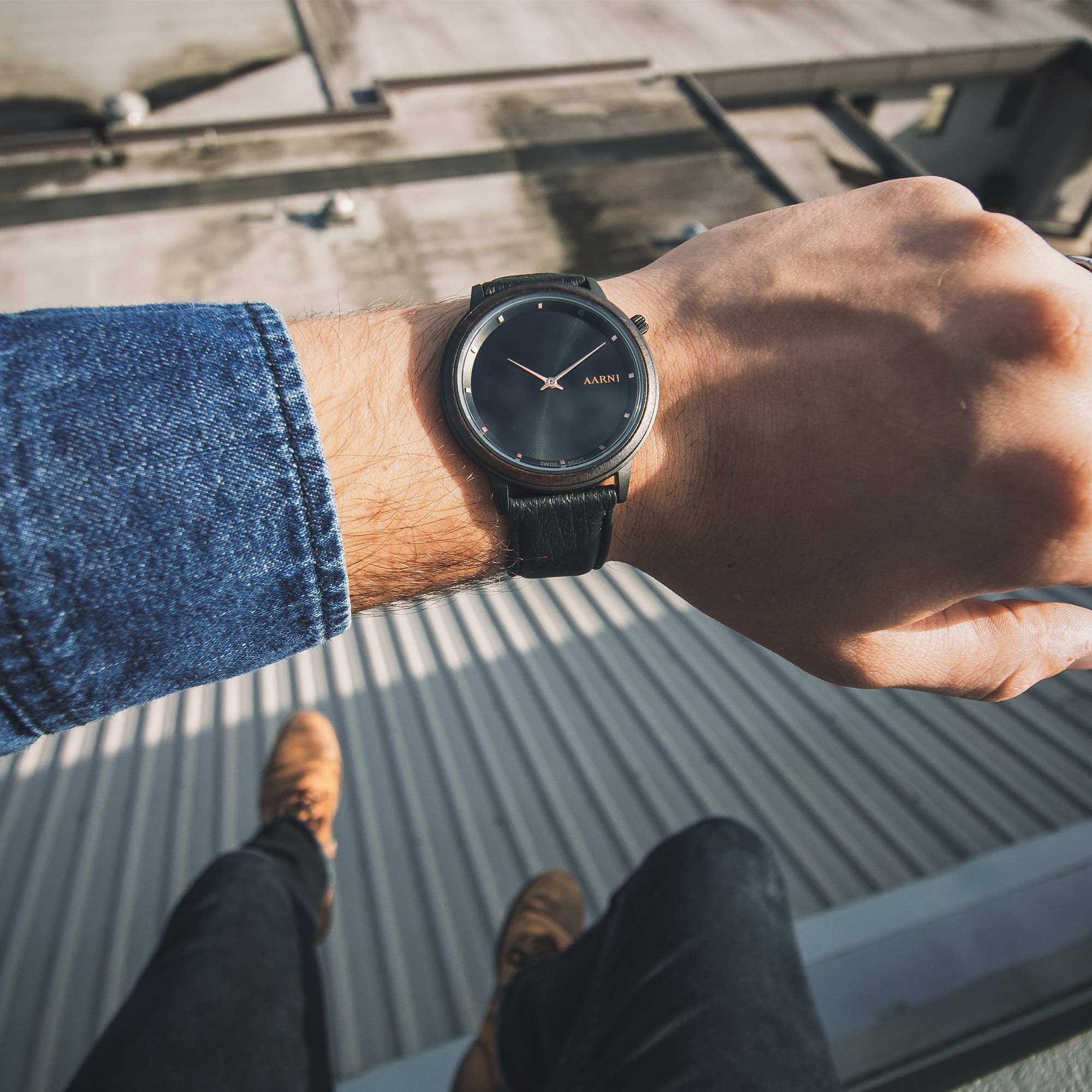 Tyylikkään kokonaisuuden viimeistelee kotimaisesta hirvennahasta valmistettu ranneke, joka hurmaa pehmeydellään. Kellon sydämenä toimii tarkka ja laadukas sveitsiläinen Ronda-koneisto.