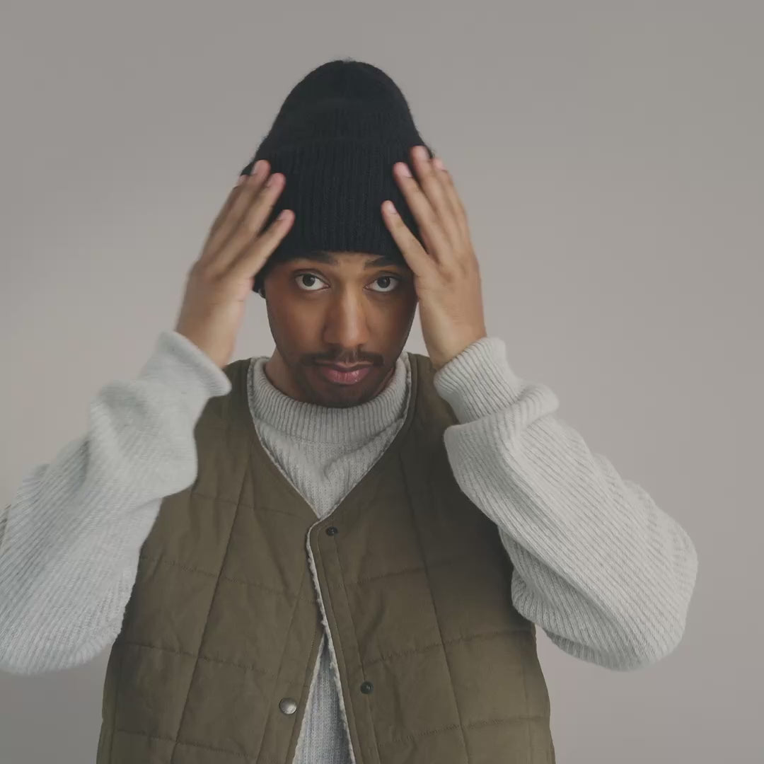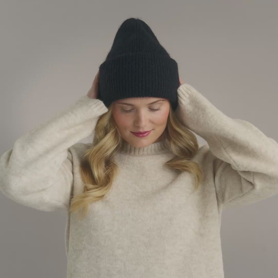 Soft, warm and beautifully airy. The Mohair beanie is knitted in Finland from a luxurious brushed mohair-merino blend. The rib knit makes it comfortably stretchy, while the fold adds both warmth and versatility.