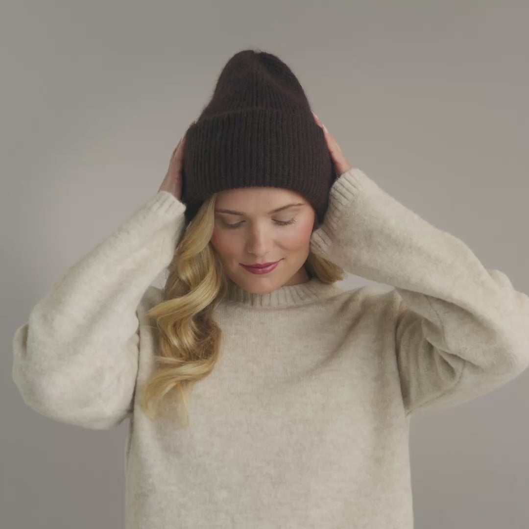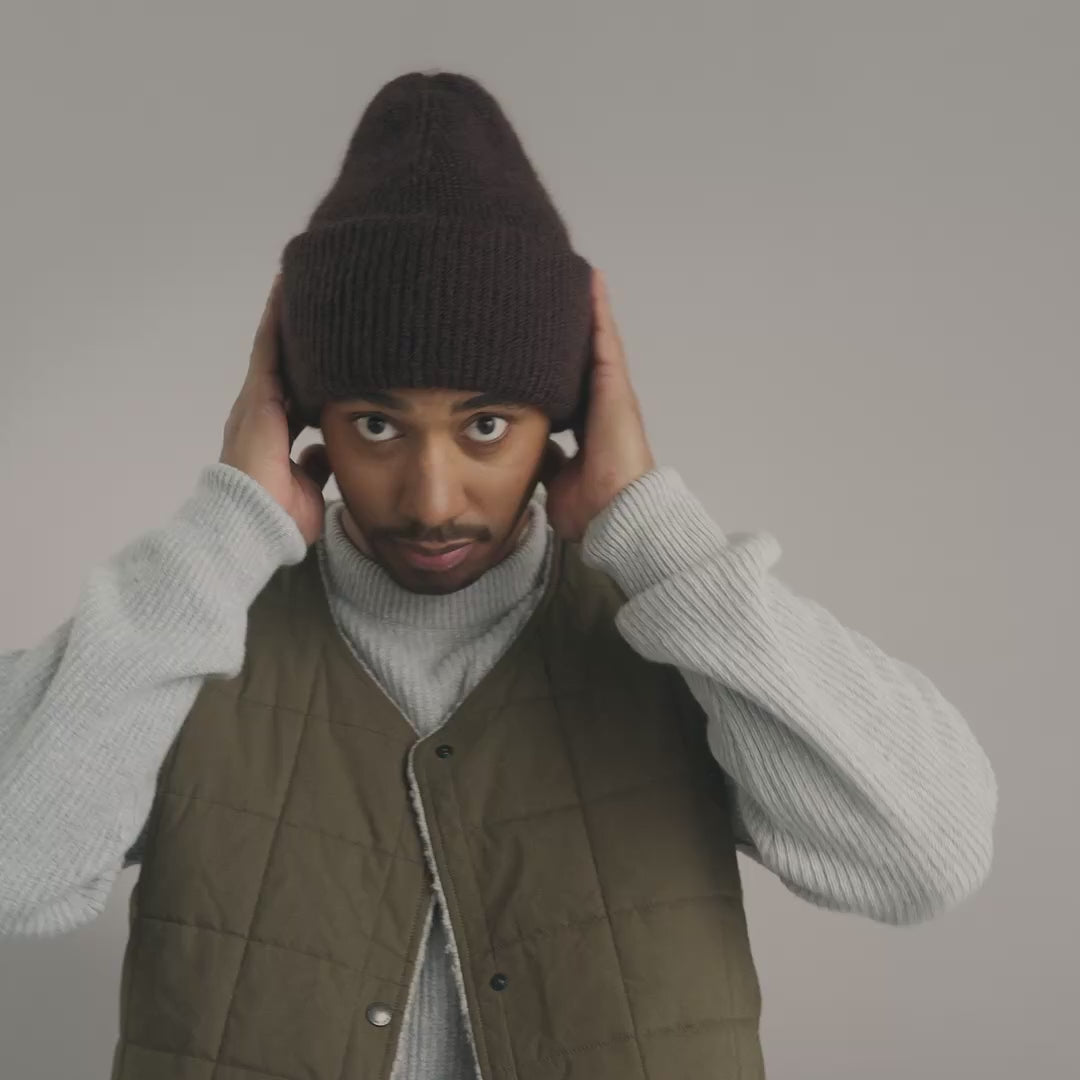 Soft, warm and beautifully airy. The Mohair beanie is knitted in Finland from a luxurious brushed mohair-merino blend. The rib knit makes it comfortably stretchy, while the fold adds both warmth and versatility.