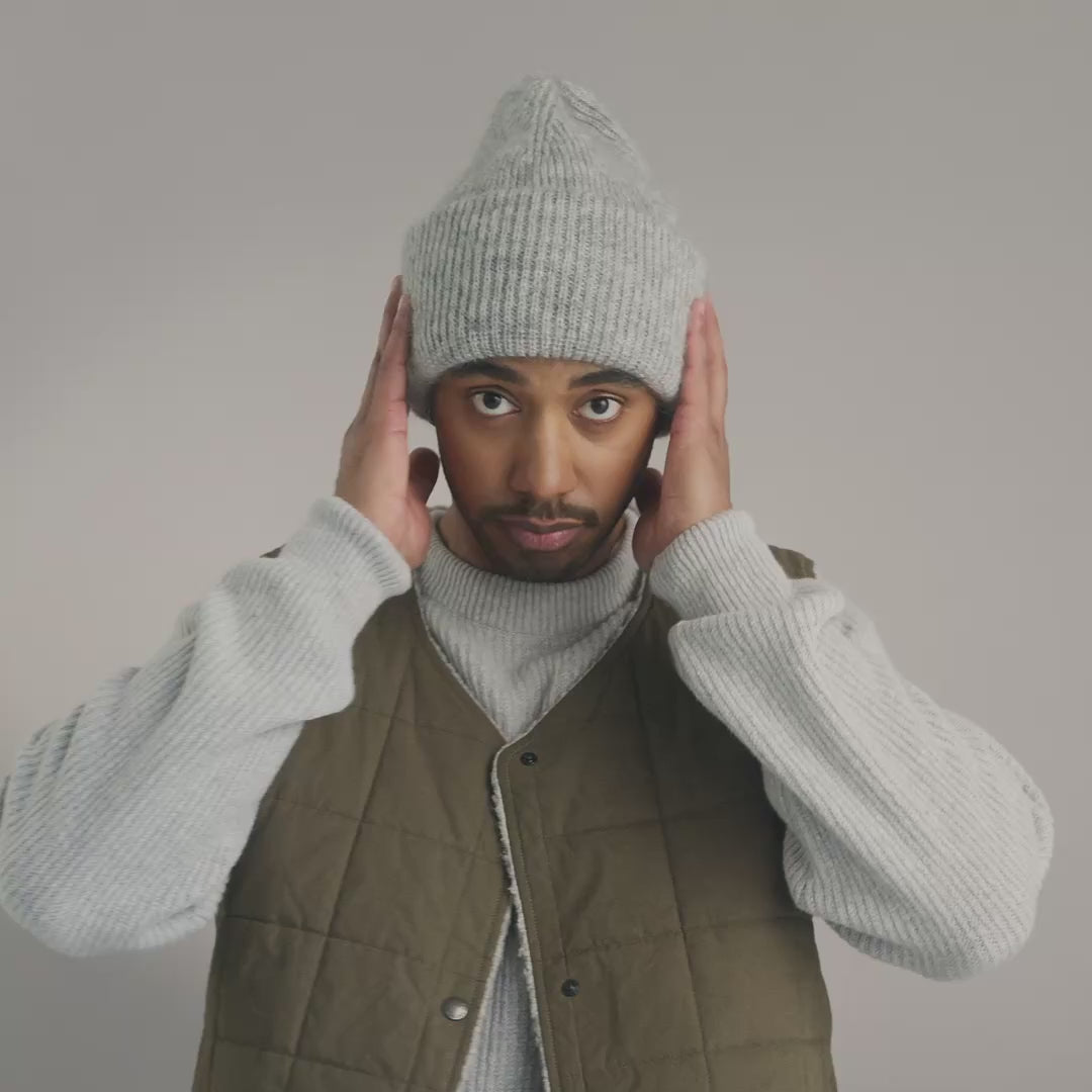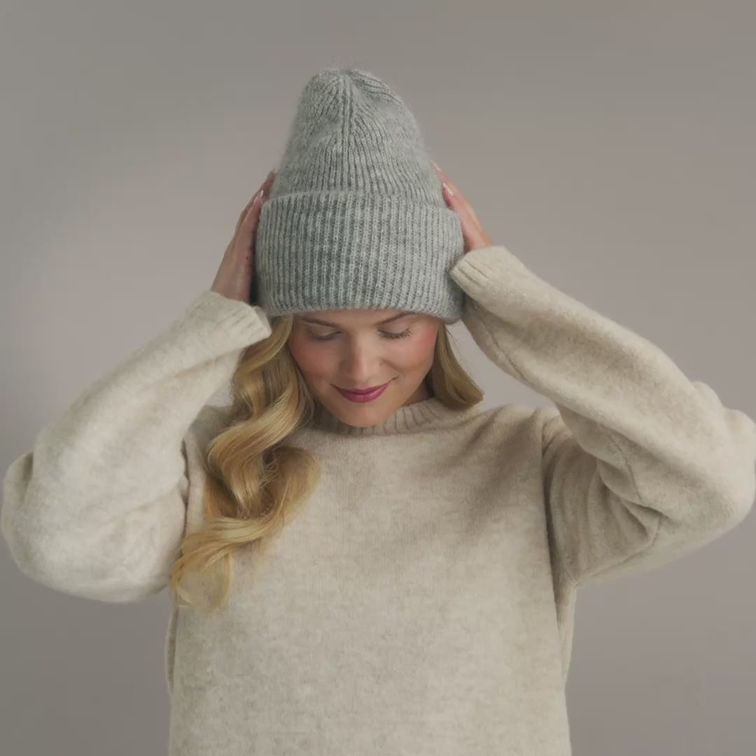 Soft, warm and beautifully airy. The Mohair beanie is knitted in Finland from a luxurious brushed mohair-merino blend. The rib knit makes it comfortably stretchy, while the fold adds both warmth and versatility.