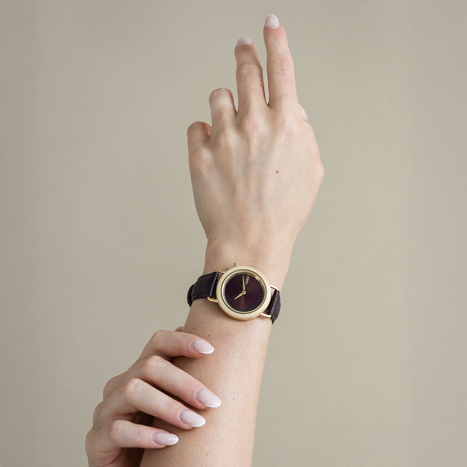 We wanted to capture the essence of where it all began ten years ago: the unique materials of our forests. The watch combines Finnish birch with soft elk leather – two strong and beautiful elements of Nordic nature.